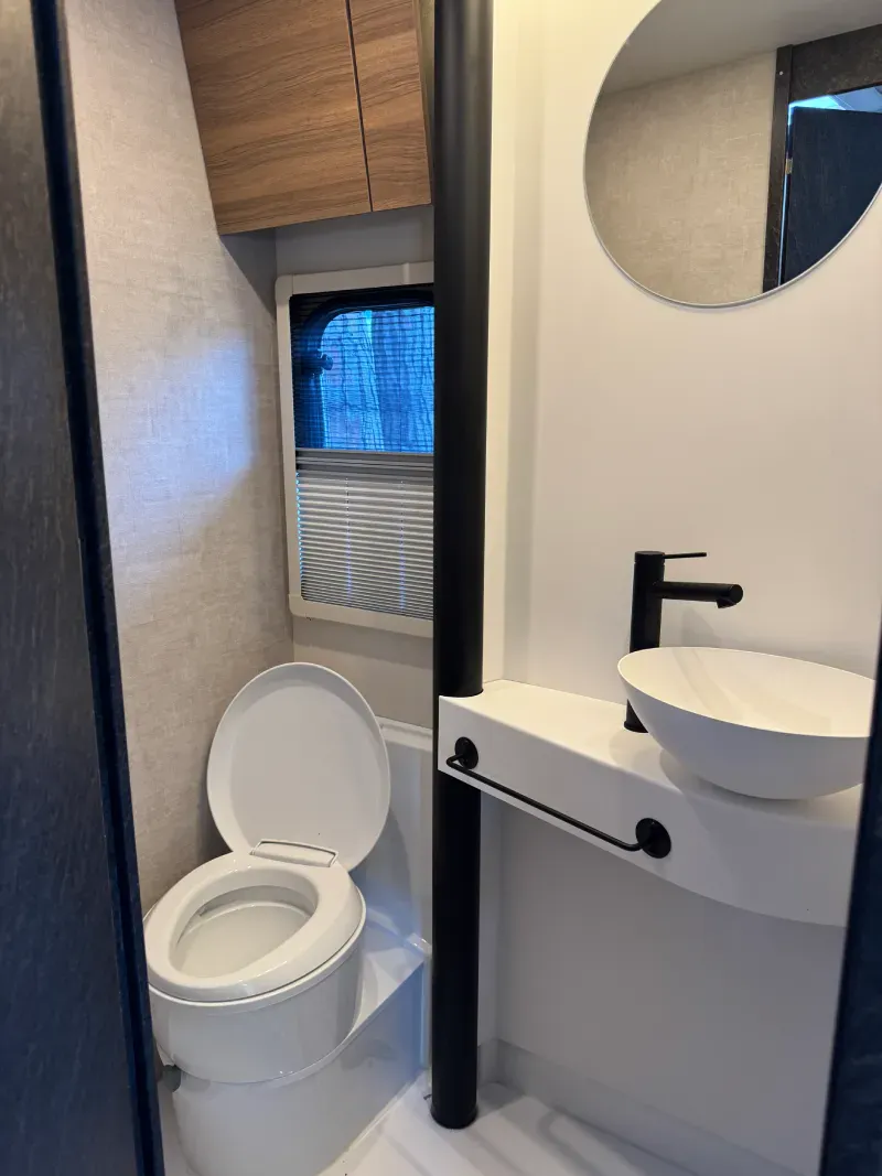 Komfortní výbava: kuchyně, koupelna, wc, sprcha, venkovní vařič, držák na kola, markýza a USB-C zásuvky.