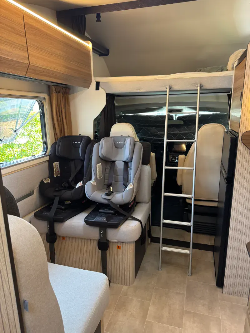 Plně vybavený vůz pro 6 osob na jízdu i spaní – ideální pro rodiny nebo partu přátel. Vhodné i pro dětské sedačky (2x isofix + 2x tříbodový pás).